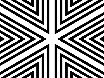 Here, we're making a kaleidoscope-esque effect. The images below are sliced up like pies and given a repeated pattern. You'll have to flip every second slice so that they all mirror each other like in the image on the right.